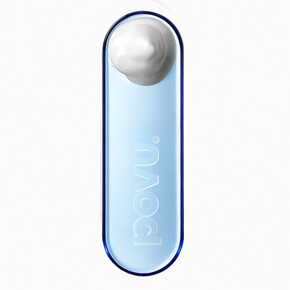 Scoop desired amount of cream with the blue spatula. Gently massage onto face, neck and décolleté in upward strokes.